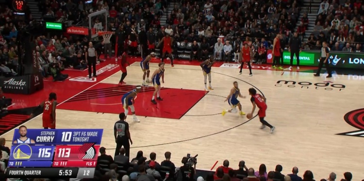 雨一直下!库里外线开炮再中三分率队夺回领先 本场三分已15中10