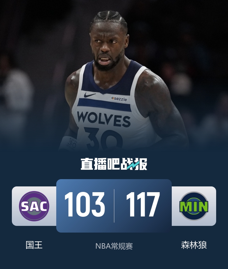 直播吧12月15日讯 NBA常规赛,森林狼今日迎战国王,前者上场比赛战胜勇士,后者则是遭遇两连败,此役爱德华兹、康利、小萨和尤班克斯等人缺战。