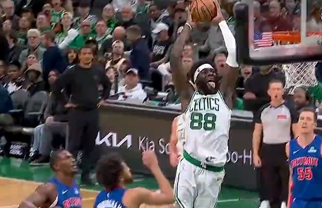 吐舌头提前庆祝!科塔持球突破 垫步起飞双手滑翔暴扣!