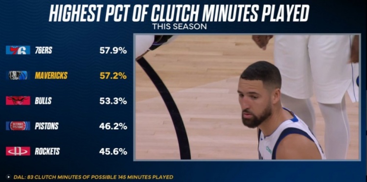 和谁都五五开!本季关键时刻占比榜:76人第1 独行侠第2 火箭第5