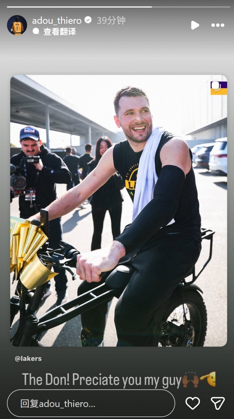 湖人新秀蒂耶罗更新INS感谢东契奇:“感谢你我的兄弟。”