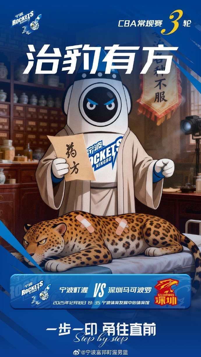 宁波官博晒出了本场比赛的预热海报,定名为:治豹有方。