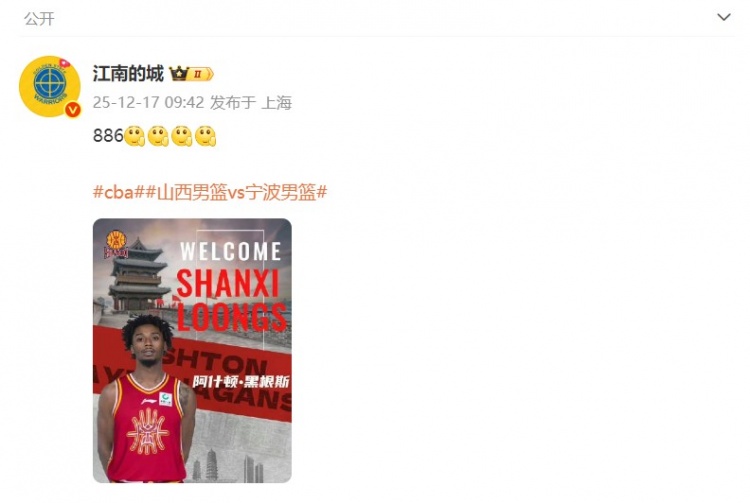 直播吧12月17日讯 今天,媒体人@江南的城 疑似在社媒上表示山西男篮和黑根斯将分道扬镳。