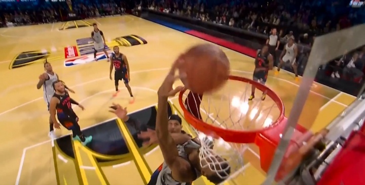 >哈特只能一楼观看!文班挡拆顺下 二楼接瓦塞尔高抛空接背扣砸进