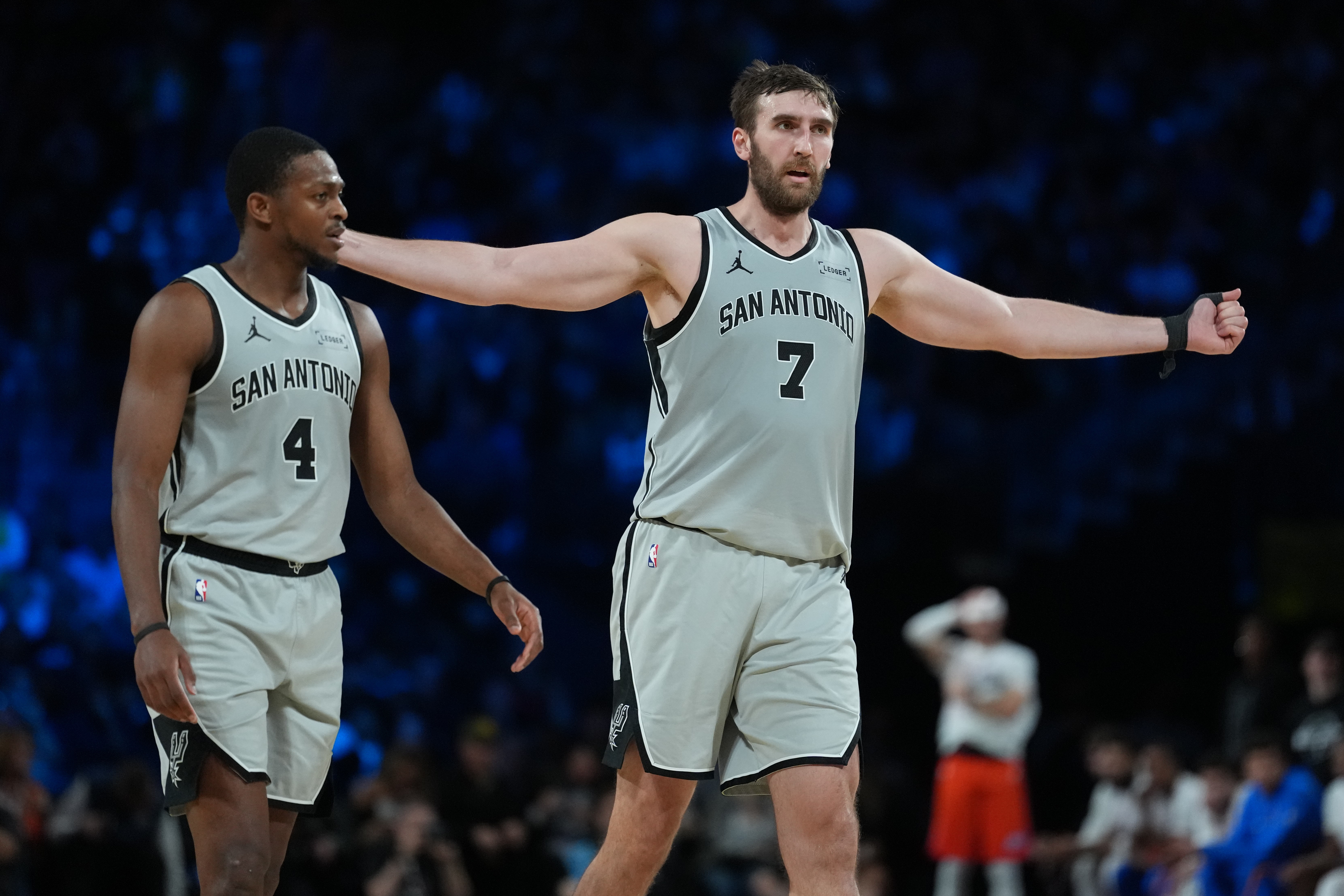 马刺板凳席哈珀+尚帕尼+凯尔登+文班亚马,非常容易搭配阵容:文班亚马和科内特交替在场,哈珀吃卡斯尔和福克斯身后的时间,尚帕尼和凯尔登两个锋线在瓦塞尔与巴恩斯身后补位,轮换逻辑和条理十分清晰。