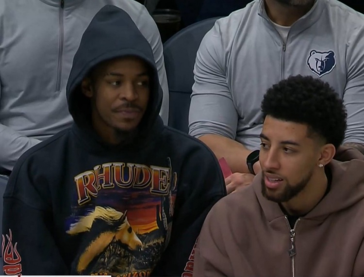 >穿搭博主上线!莫兰特身着帽衫与小皮蓬替补席观战