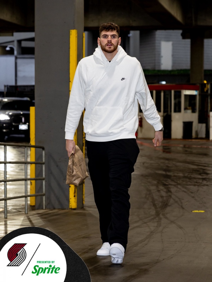 😝开拓者众人入场照 杨瀚森背着粉色小书包专心玩手机