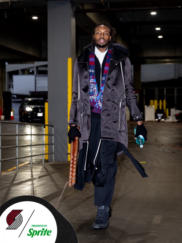 >😝开拓者众人入场照 杨瀚森背着粉色小书包专心玩手机