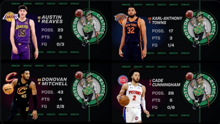 而带领活塞复兴的康宁汉姆,以及场均30+的里夫斯,和沃尔什对位合计9投0中,目前还没有开张......