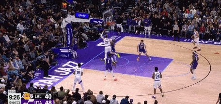 >防守威慑力!詹姆斯篮下补防 菲利波夫斯基勾手未能命中