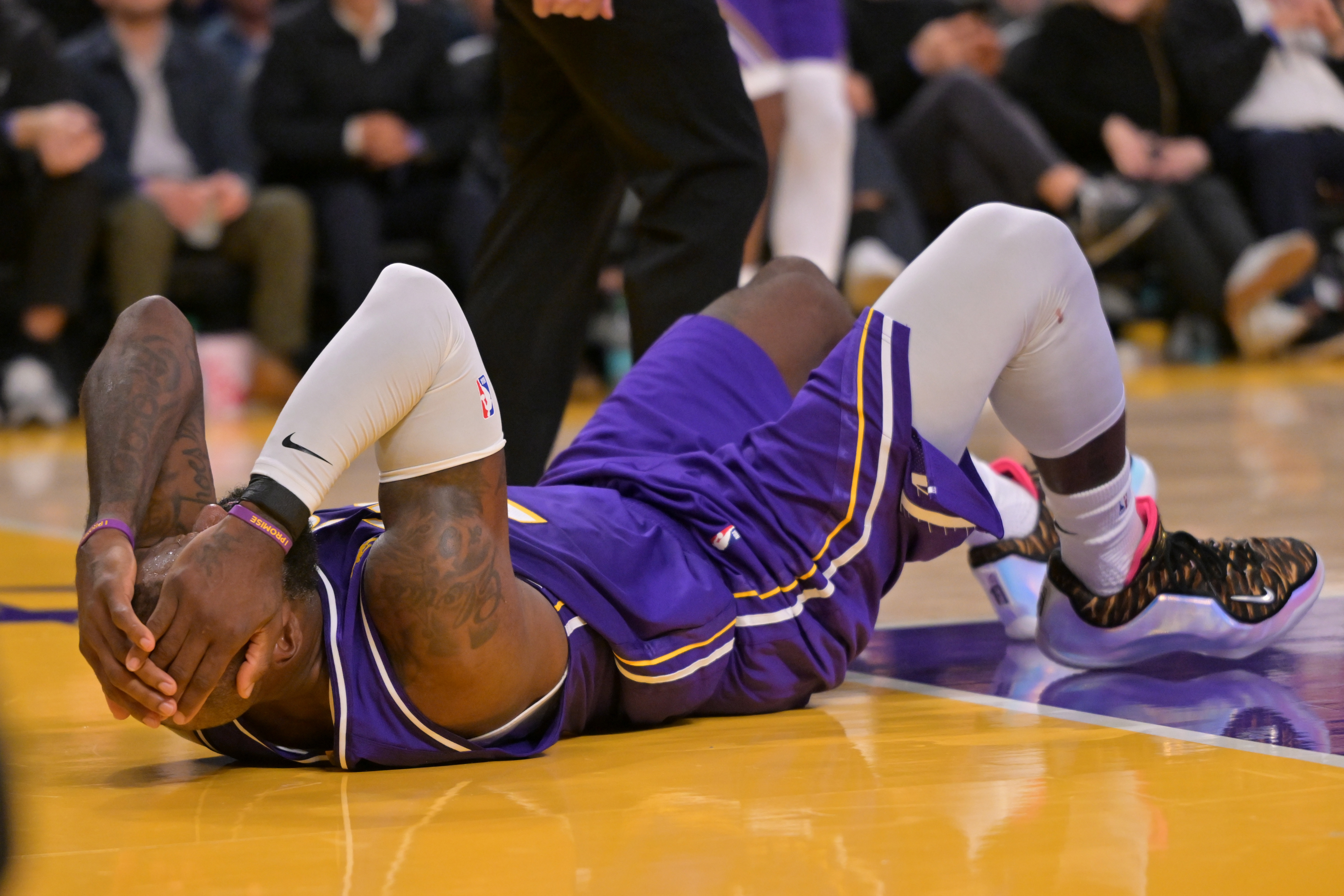 谈到自己的左膝伤情,詹姆斯说:“就是膝盖内侧被撞了一下,感觉非常疼痛。我就想稍微缓一缓,等它冷静下来,我们希望那种痛感能缓解,我告诉我的训练师迈克,我们这次算是躲过一劫。受伤的是和上赛季末(季后赛G5)同一侧的膝盖。”