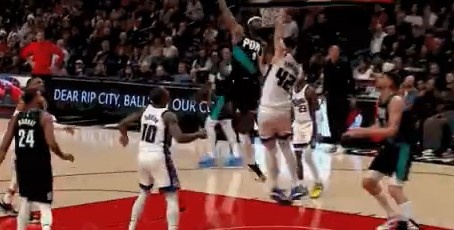 石破天惊!格兰特持球突破 转身力压雷诺暴力隔扣