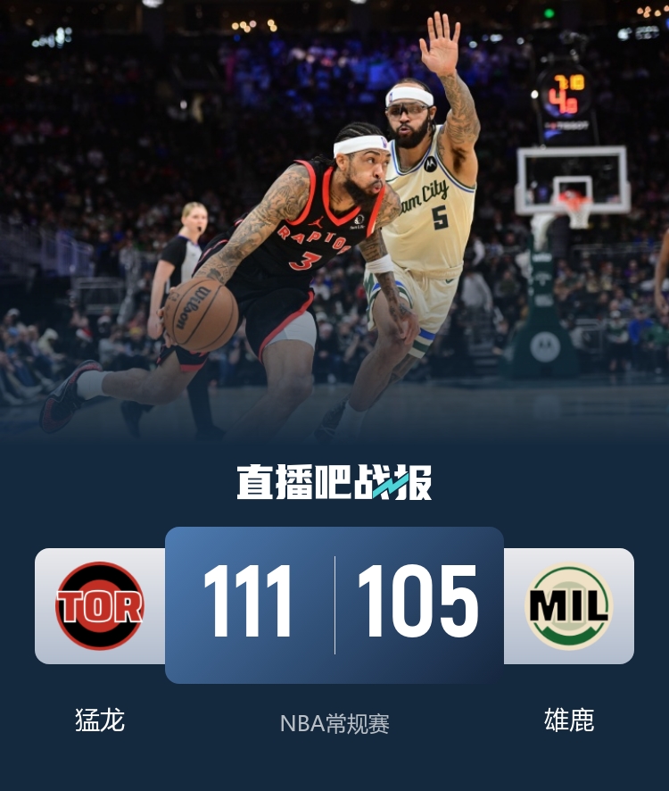 直播吧12月19日讯 NBA常规赛,雄鹿今日迎战猛龙,前者上场比赛惨败篮网,后者则是战胜热火,此役字母哥、库兹马、巴雷特和珀尔特尔等人缺战。