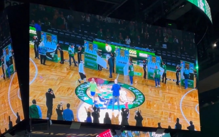 比赛半场休息时,现场举办了由马塞诸萨州官方彩票机构发起的“Banner 18 Challenge”活动,以庆祝凯尔特人在去年获得的第18个总冠军。