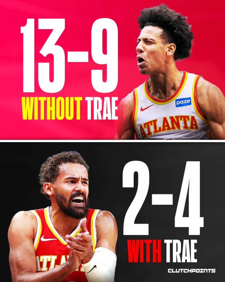 老鹰赛季15胜14负!无特雷·杨13胜9负 有特雷·杨2胜4负!