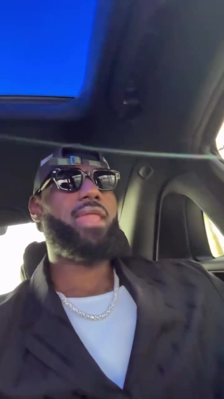 >墨镜一戴帽子反戴!老詹上班路上听着歌嗨了 摇头晃脑神情愉悦