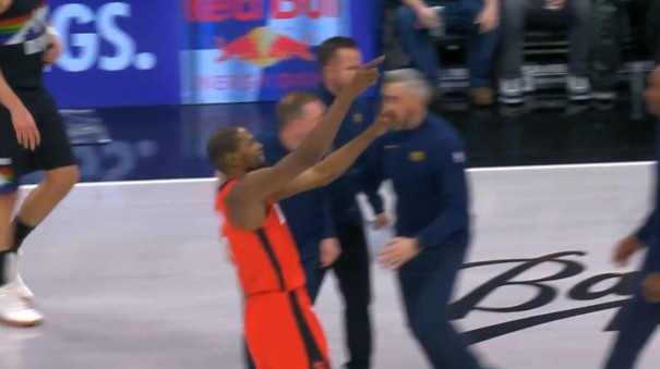 >你给劳资出去🤣!掘金主帅被驱逐 杜兰特指向场外示意其退场