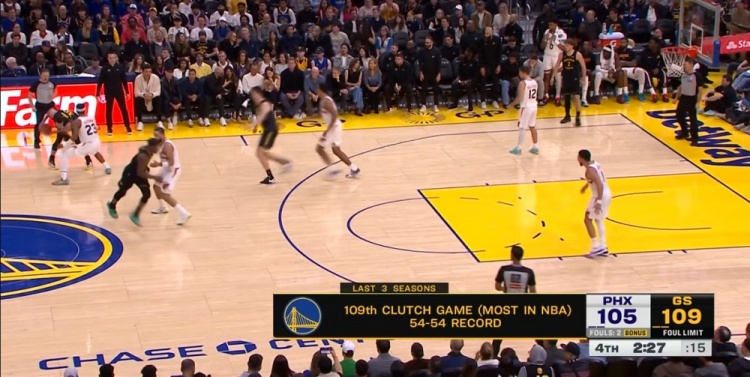 比赛第四节双方双方比分紧咬,转播方晒出一组数据:勇士近3个赛季有109场比赛打到关键时刻(含本场),为联盟最多!