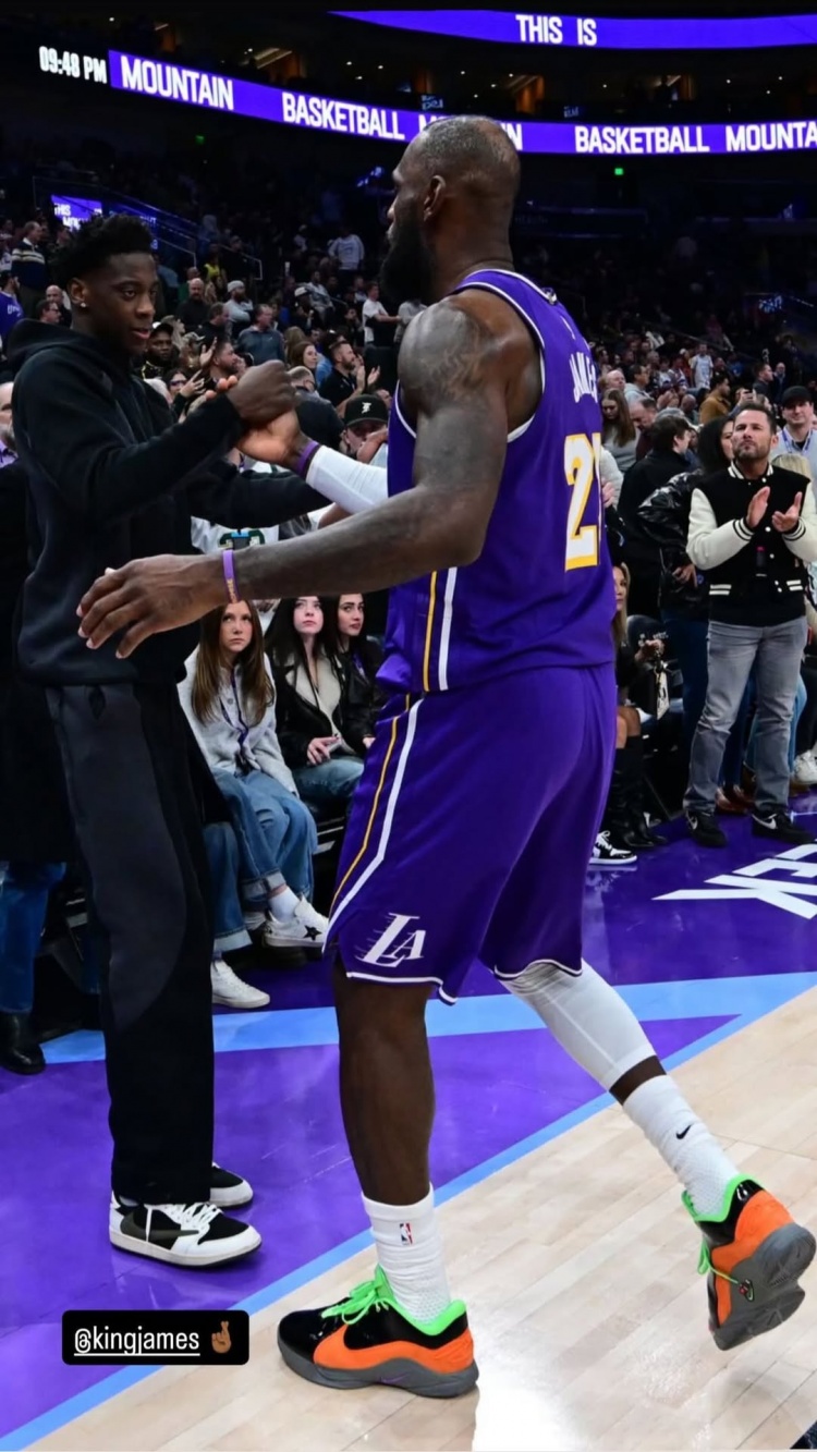 2026届NBA选秀热门球员AJ·迪班萨更新Instagram Story,晒出自己近日现场观看爵士主场迎战湖人比赛赛后与詹姆斯拥抱的照片。