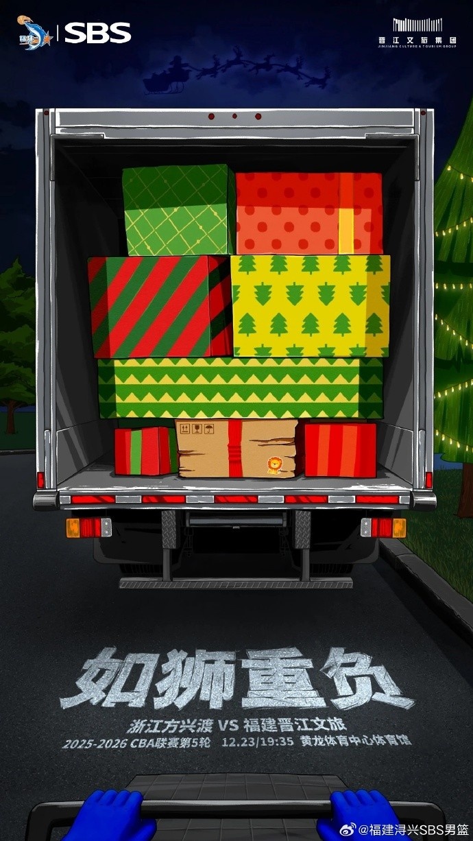 2025-2026赛季CBA常规赛第五轮明晚继续进行,福建晋江文旅男篮继续客场之旅,明晚(12月23日)19:35再次挑战卫冕冠军浙江方兴渡男篮。