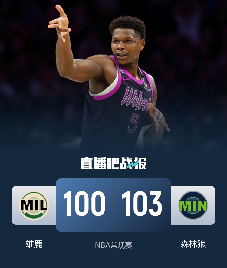 直播吧12月22日讯 NBA常规赛,森林狼今日迎战雄鹿,前者上场比赛战胜雷霆,后者遭遇两连败,此役字母哥和贝兰热缺战。