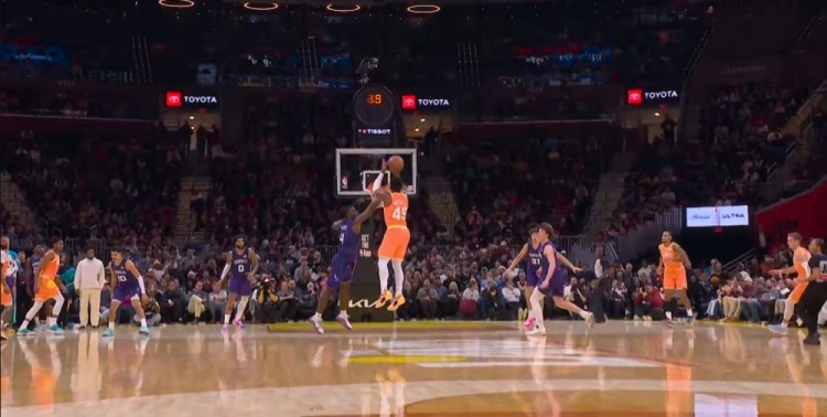 球进灯亮!米切尔脚踩logo轰进半场压哨打板三分球