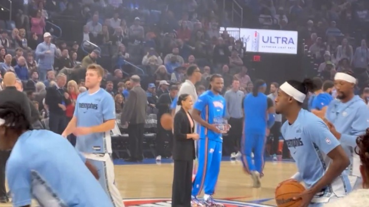 人才济济!卡森·华莱士获10-11月西部最佳防守球员 赛前领到奖杯