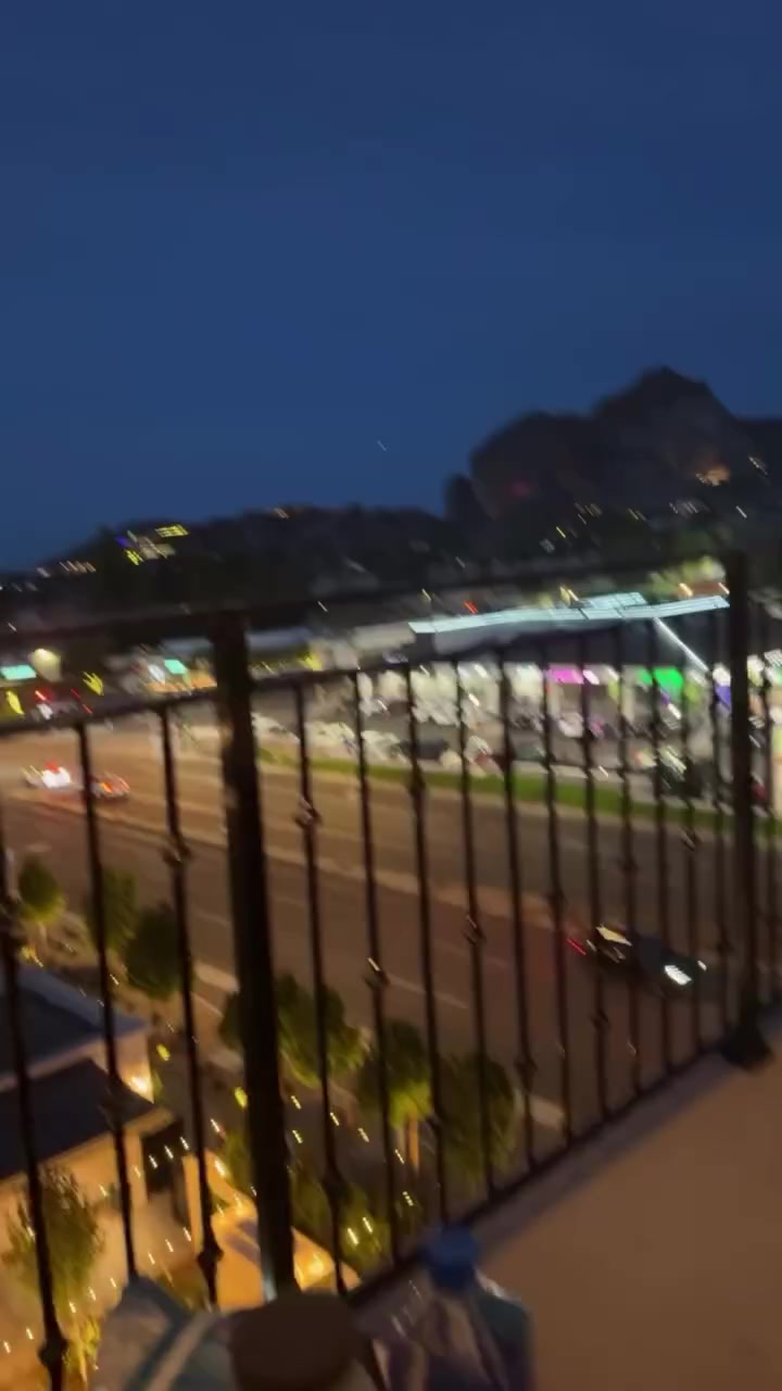 詹姆斯晒出他在下塌酒店阳台露天观看高尔夫集锦的动态,并写道:“太阳☀️峡谷⛰️的晚上”