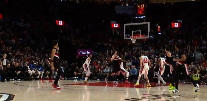 >落后21分反超!卡马拉弧顶三分射进 开拓者取得本场比赛首次领先