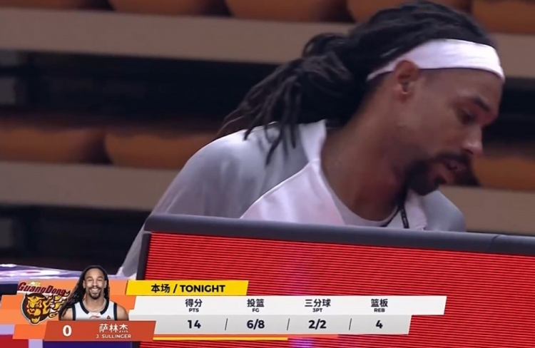 第一节,广东外援萨林杰高效发挥,打满10分钟8投6中,三分2中2拿到14分4篮板1助攻,正负值+10。