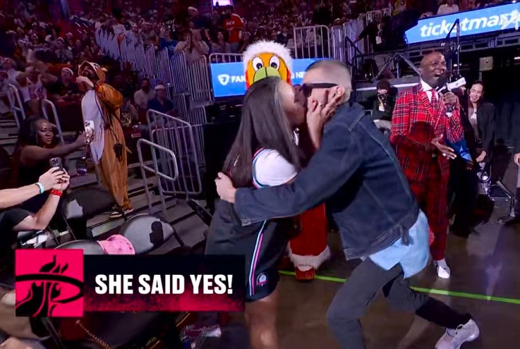 >🥰SHE SAID YES!热火场边球迷求婚成功