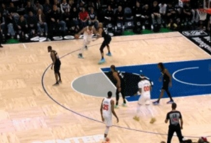 昔日双塔!唐斯拉开单打戈贝尔未能成功 转身上篮脱手出界