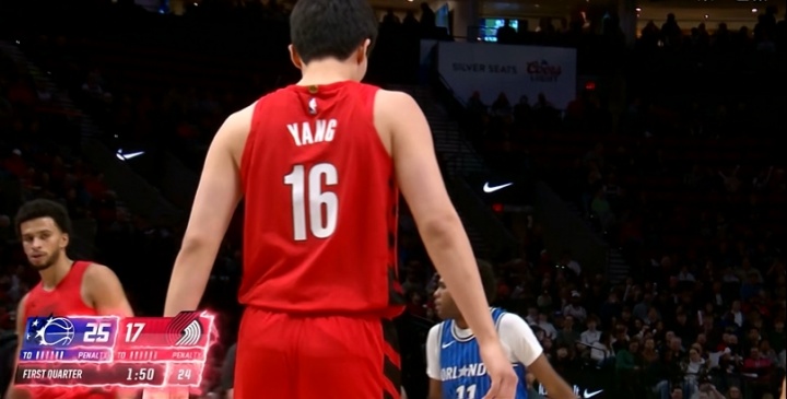 杨瀚森罚球线背打艾萨克 转身造到犯规两罚全中 不到1分钟4分1板