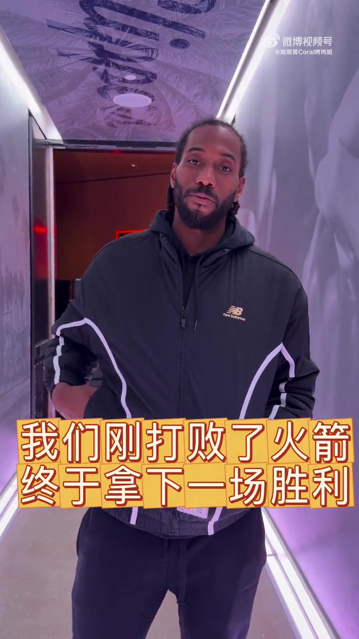 赛后,前NBA记者、现莱昂纳德的中方经纪人“烤肉姐”陆垠箐晒出小卡对中国粉丝的祝福视频,并写道:“刚拉着小卡被迫营业,新鲜热乎的来了。”