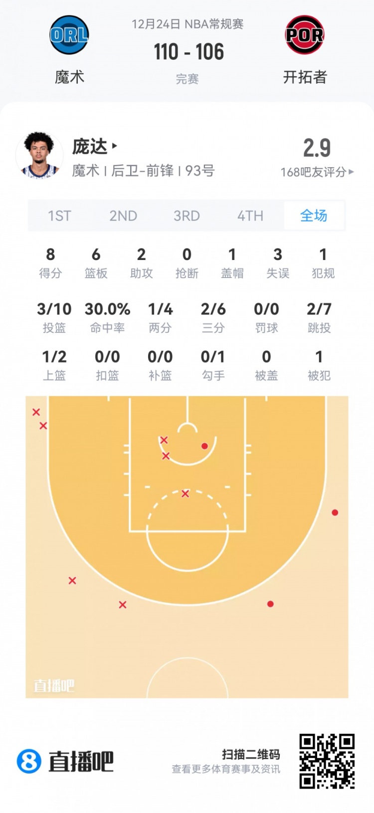 开拓者首轮16号秀杨瀚森 登场7.9分钟
