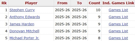 据统计,这是波特本赛季第8次单场25+5三分,前锋球员中第1,所有球员中第5。