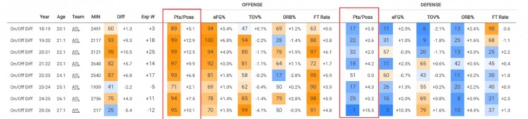 过往杨对进攻的提升足以覆盖他对防守的负面作用。这赛季在样本扩大后,或许也能做到。但老鹰跟过去也不一样了,即使没有杨,老鹰依旧有两个场均20+的球员,全队7人得分上双,不乏组织者和开发手。这种平均略有突出的配置特点或许上限不高。杨以绝对失衡的特点定义球队,想要走很远也不容易,而对此的质疑已经持续了几个赛季。想要终结疑虑,杨和老鹰得证明曾经的东决高度是可复制的。