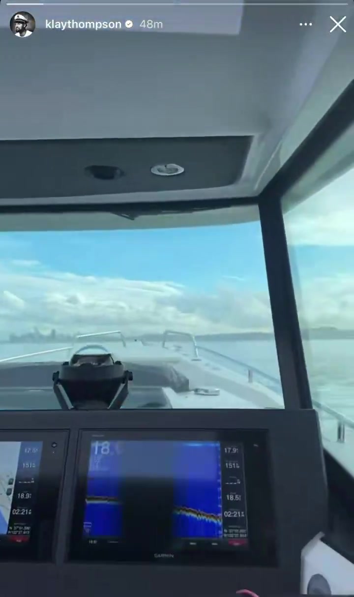 克莱驾着自己的船行驶在湾区外面的海域,乘客是自己的女友马冬梅Megan Thee Stallion,还有马冬梅的爱犬,和克莱已逝的爱犬Rocco一样是斗牛犬的4oe,Instagram拥有49.5万粉丝。
