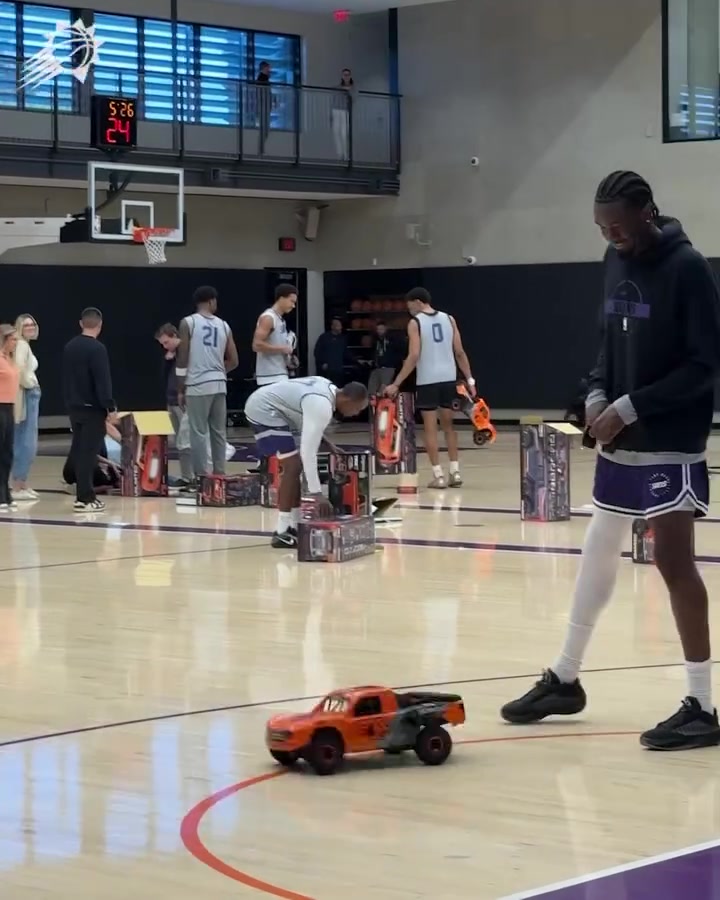 >太阳全队获赠圣诞礼物遥控卡丁车 全队飙得不亦乐乎 还带漂移