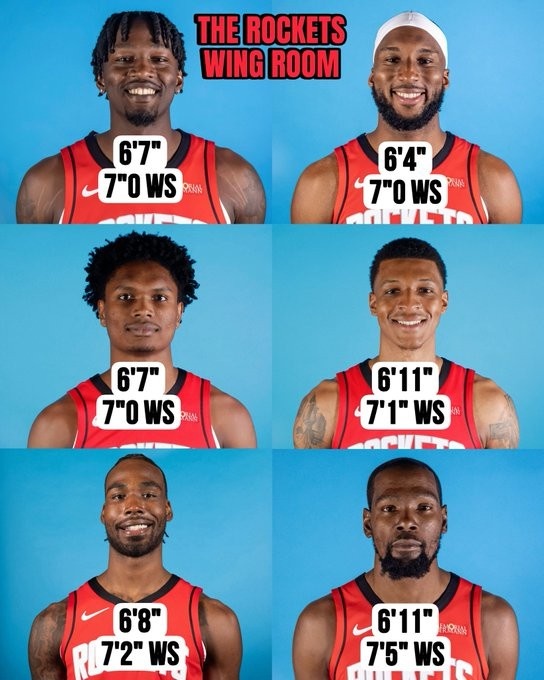 这攻防真吓人!电风扇复出!火箭外线六人臂展2米13及以上