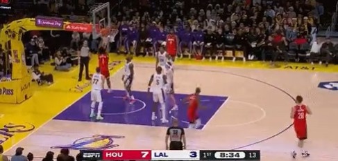>虎口夺食!阿门从詹姆斯手中抢回前场板补篮得分