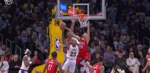 >马上41了啊!詹姆斯冲筐对抗火箭两大内线高难度得分