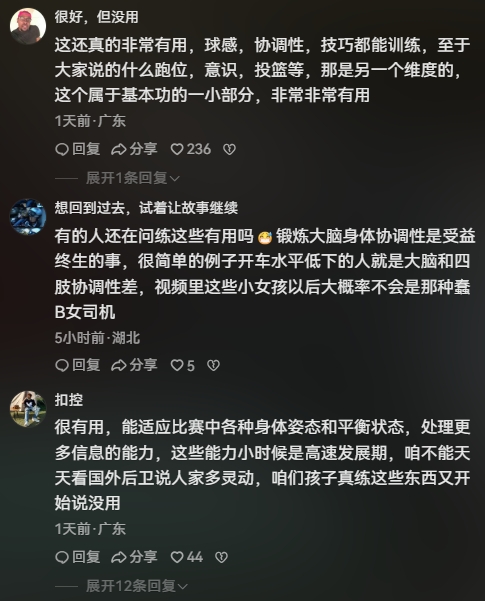 同时网友们也非常赞成老师的训练方式,称即使未来不打球,也能借此提高平衡感和身体协调性。
