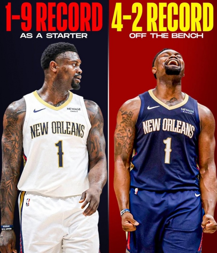 打替补更有益于球队?锡安本赛季首发时仅1胜9负 替补时4胜2负