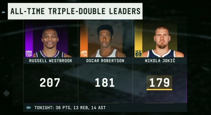 >本赛季就能破?约基奇已揽179次三双 离威少的纪录仅差28场!