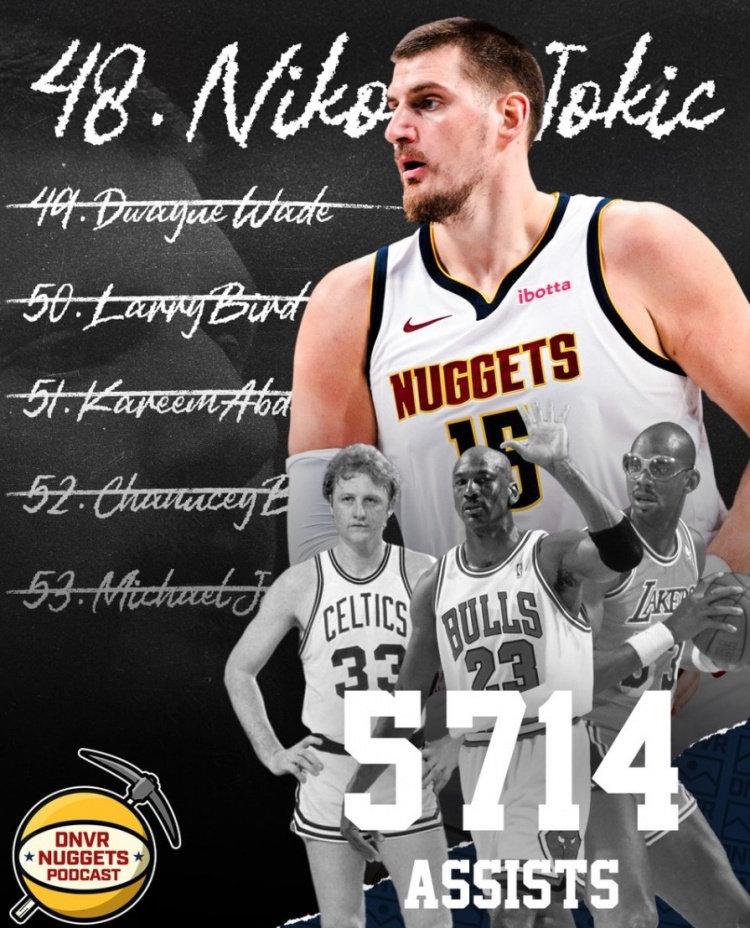 从12月8日至今,约基奇在历史助攻榜上分别超越了乔丹、比卢普斯、贾巴尔、拉里·伯德和德维恩·韦德,排在他前面的是沃尔(5735次)。