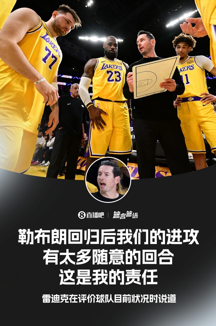 “我认为自从勒布朗回来后,我们在进攻端就不如之前那么有章法了(I think since we've gotten Bron back, we haven't been as organized offensively),我们有太多随意的进攻回合,这是我的责任。”