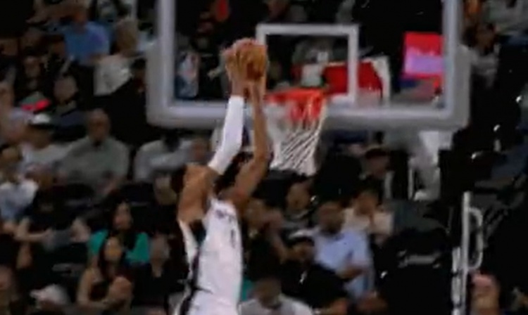 >双子星连线!哈珀吊传篮下 文班亚马空接背扣跟玩儿一样