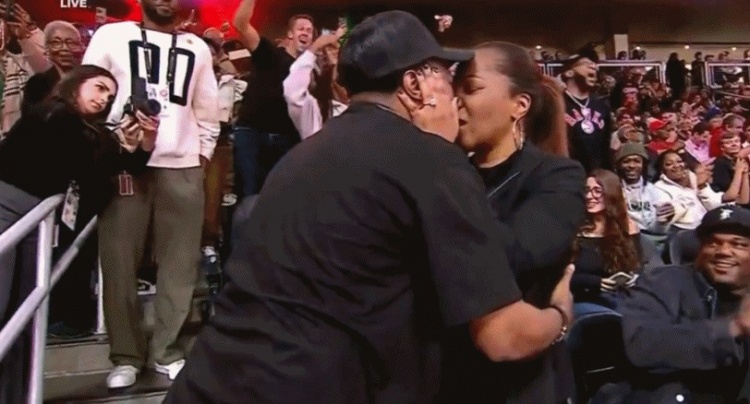 >甜蜜时刻!老鹰主场一大叔求婚成功 二人忘我热吻引众人鼓掌祝福