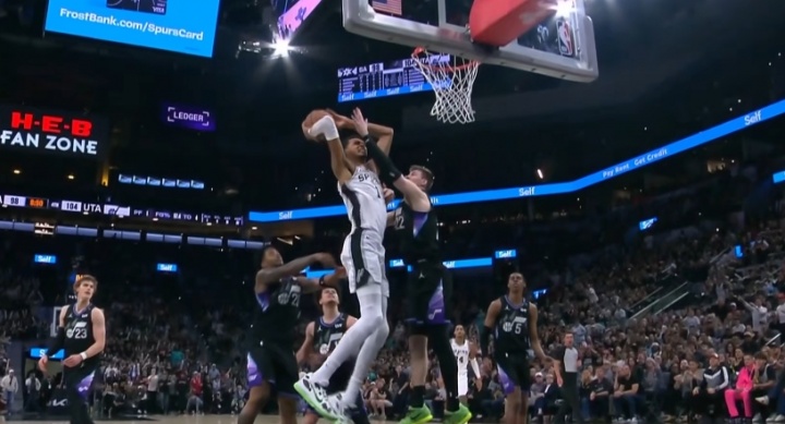 >太残暴了!文班杀进内线 双手抡圆了砸扣菲利波!
